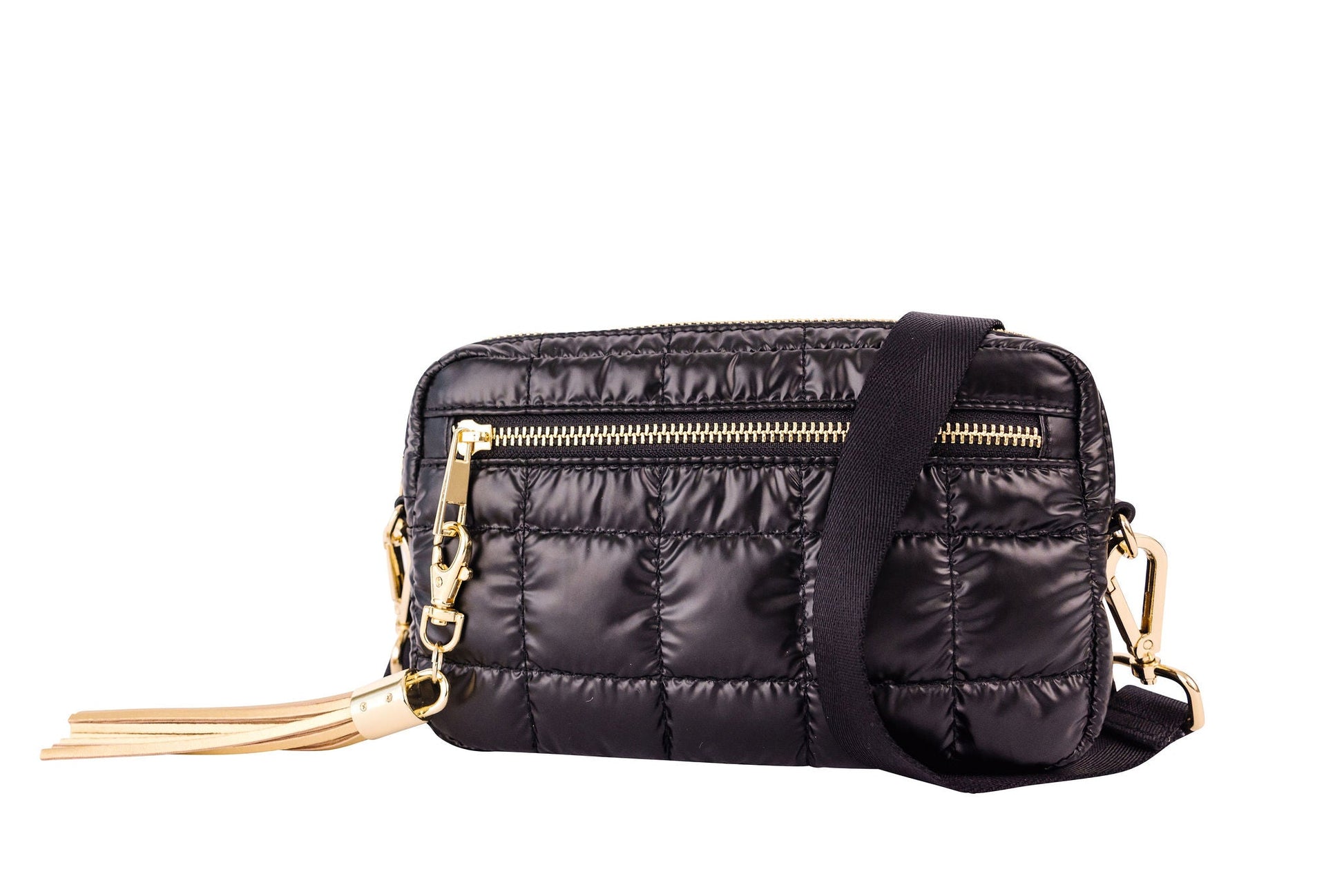 - Fashion-Forward Design: Modern gold hardware paired with a sleek, puffy exterior for a chic look.